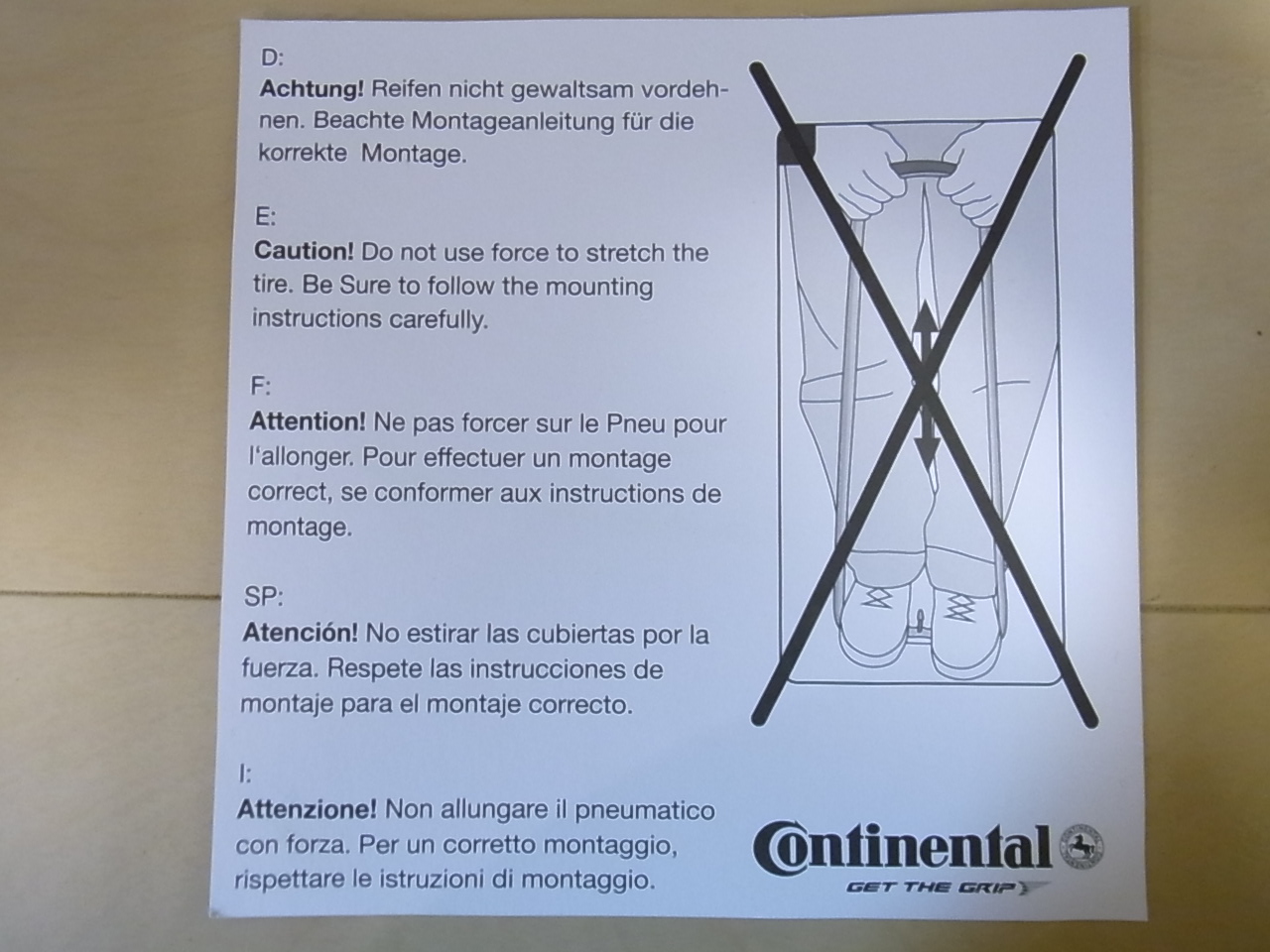 伸ばして嵌めるという風に言われていたんですが、コンチネンタルの取説には引っ張っちゃダメ!っ