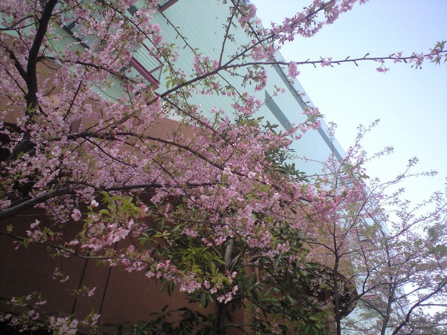 お台場海浜公園に出る為、アクアシティの横を通った時、なんと桜が咲いていた。確かに異常に暖かかったが、まさか桜が咲いているとは・・最初、梅かと思ったぐらいだ。