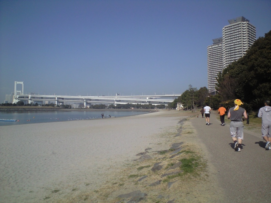 日比谷アートスポーツのランニングステーションに集まり、荷物を置いて走る。お台場まで走って、レインボーブリッジを渡る、総距離20㎞のコースだ。